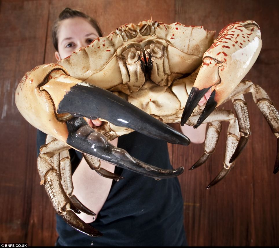 One of the largest crabs in the world. – Weighs a mighty 29lb with a 15-inch shell. – It has a white shell with claws that are splashed in red.