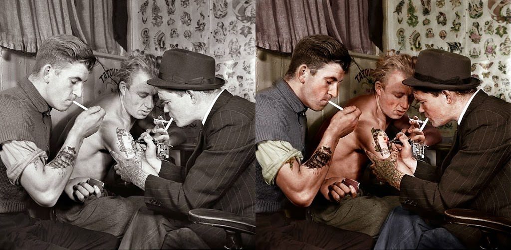 Putting on a tattoo in 1952.