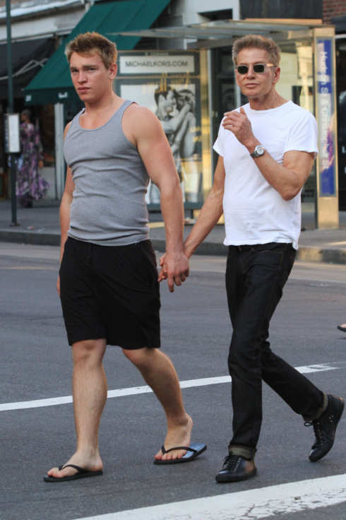 Then 66 Year old Calvin Klein with his then 19 year old male model boyfriend Nick Gruber in 2010. Klein has been married twice, and has a daughter. He did not come at as gay until recently despite being a major fashion designer for nearly 50 years. He actually grew up in the same neighborhood as Ralph Lauren. Small world.