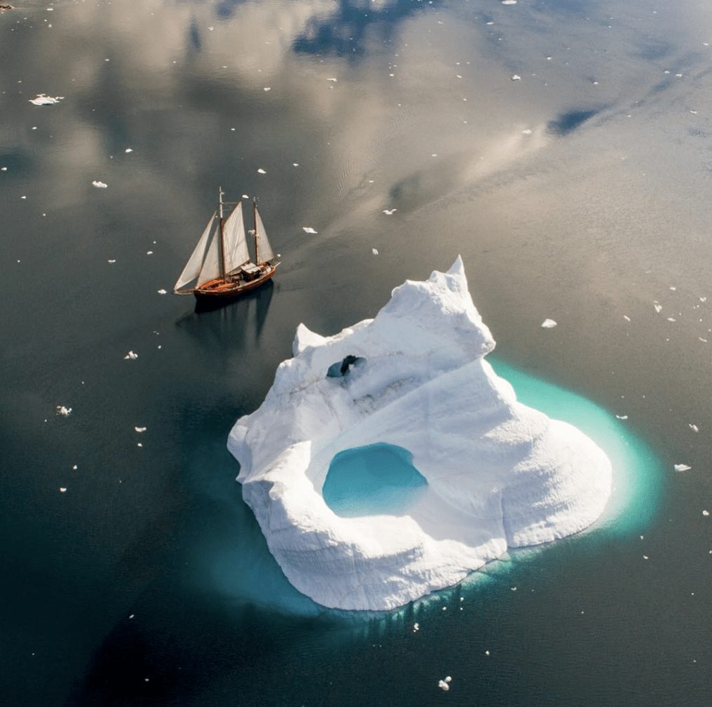 The Sermilik fjord is one of the deepest on Greenland’s East coast. Lined with steep peaks and an irregular coastline, it has been a challenging place for settlements to endure. During calving season icebergs of all shapes and sizes make their way to sea. At times the shapes can be almost otherworldly.