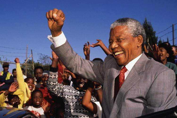 After a 27-year jail sentence for his revolutionary part in the anti-apartheid movement in Africa, Nelson Mandela was finally freed in 1991. This iconic image shows the jubilant Mandela being release after his wrongful incarceration.