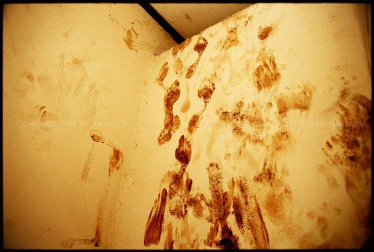 Though there are various devastating images of the tragedy, this one taken by Annie Leibovitz is one of the most haunting as it shows the bloody feet of children attempting to escape the slaughter by climbing the walls.
