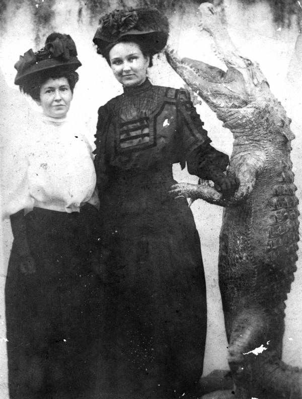 Women pose with an alligator killed in Florida, US in 1904