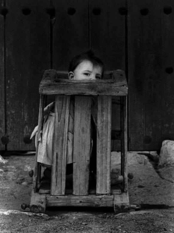A small child is confined in a special area in an insane asylum in Spain, 1922.