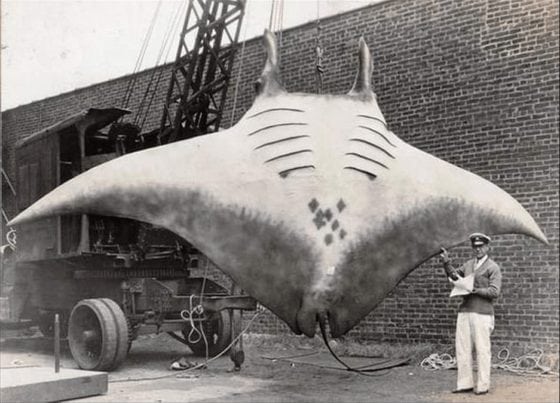 This Enormous Manta Ray was photographed by A.L. Khan, August 26, 1933, and is definitely not something you’d want to encounter during your next snorkeling vacation.