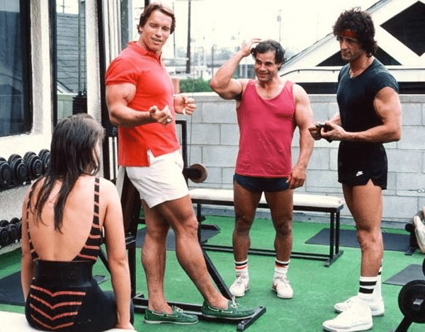 Arnold Schwarzenegger and Sylvester Stallone – workout session in Venice Beach. 1980’s.