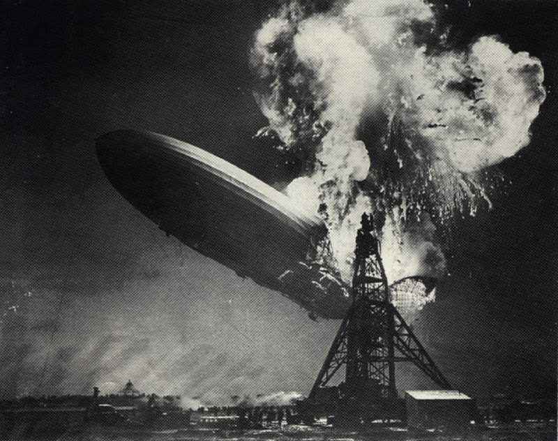 The Hindenburg zeppelin catches fire on May 6, 1937