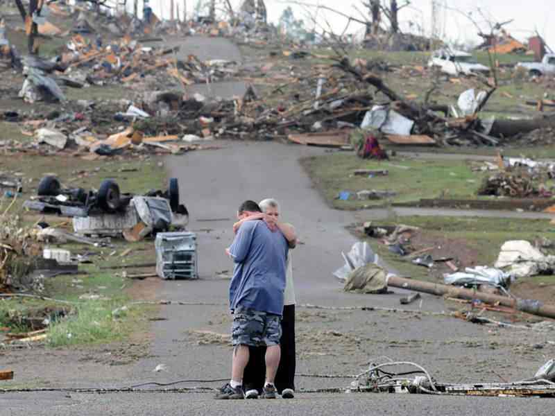 Family members embrace in the wake of a devastating Alabama tornado, March 2012.