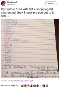 21. This 6-year-old who made some additions to his parents’ shopping list.