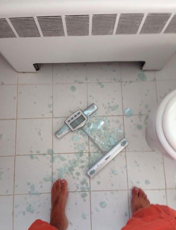 When this guy bought one of those newfangled scales that will tell you your weight in an electronic voice, he could never have known that he would be hearing it scream…..