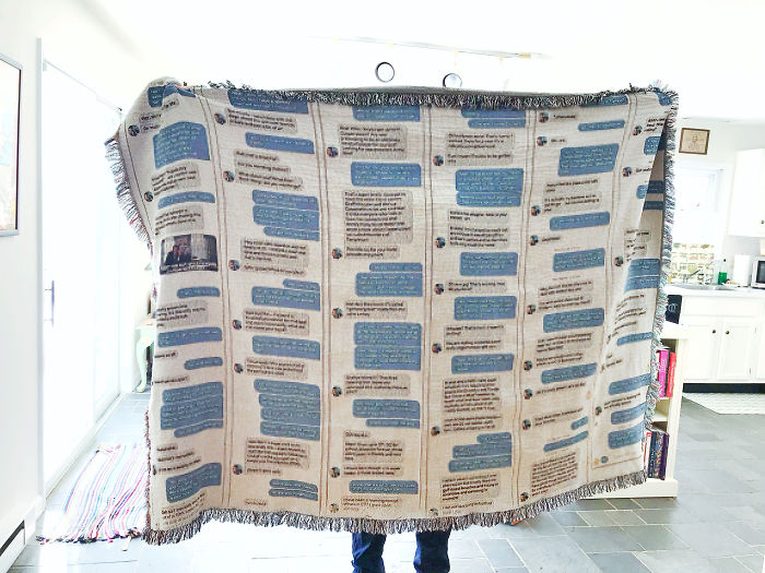#7 My Girlfriend And I Celebrated Our 1-Year Anniversary. We Met On Tinder, So Naturally I Had Our First Conversation Printed On A Blanket