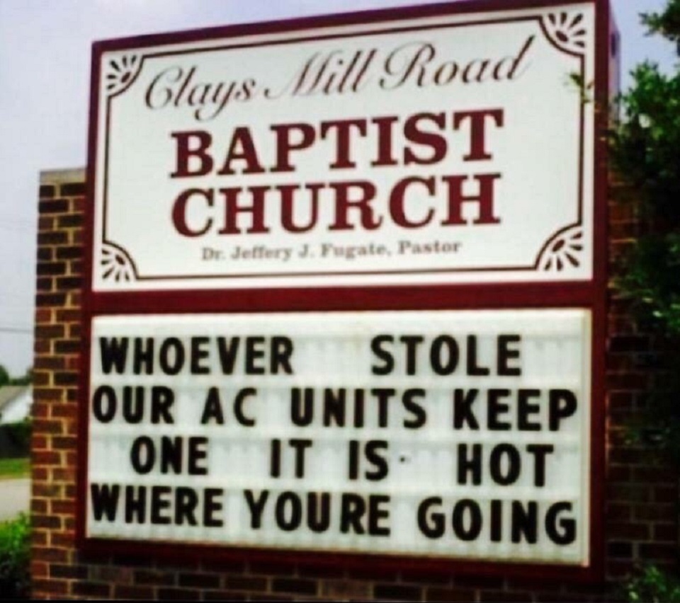 And if you end up stealing from this church, they will make sure to put you on blast. If I was part of the congregation and I got a new AC unit, I would suddenly feel very hot under the collar. And not because they threaten me with eternal damnation for stealing… a little out of the ordinary, but extremely amusing!