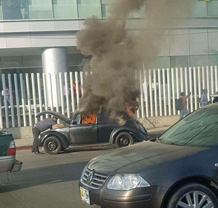However, the man is probably taking his personal things out of the car’s trunk. Run for your life, mate, leave everything behind!