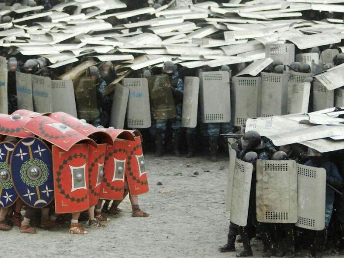 Hey, guys, I think we have a chance at winning. If we stay like this for a while, they will get bored and leave, don’t you agree? Or should we just run? Sadly, not a good day for wearing socks with sandals…