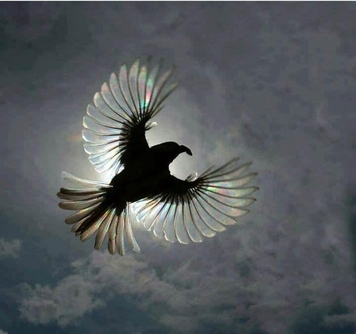 The reflecting light makes the bird seem like a magical creature.