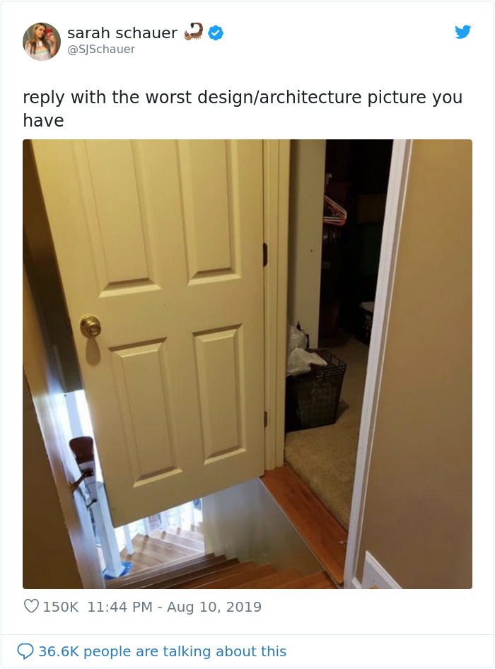 Not every architect can be an Antoni Gaudí or an Art Vandalay – some make do with the spaces they are given and yes, some do make silly mistakes. When the results aren’t downright dangerous they can be funny, which is why Twitter user Sarah Schauer decided recently to ask people to send her their worst design/architecture pics that they have.