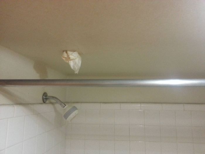 #20 Nothing Screams Quality Hotel Room Like A Hole In The Ceiling With A Napkin Jammed In It