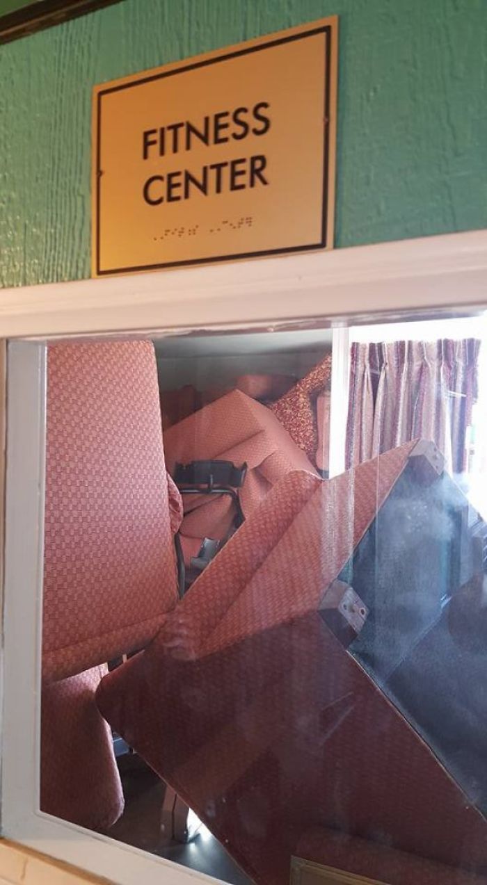 6. Try unpacking and finding the previous people left their dirty laundry in the Drawer, and the Maid missed it. Or, imagine getting ready to go to sleep. I always check out the bed before undressing. That’s when I noticed the small hole in the ceiling big enough for a camera lens. Good place to replaster using the toothpaste!