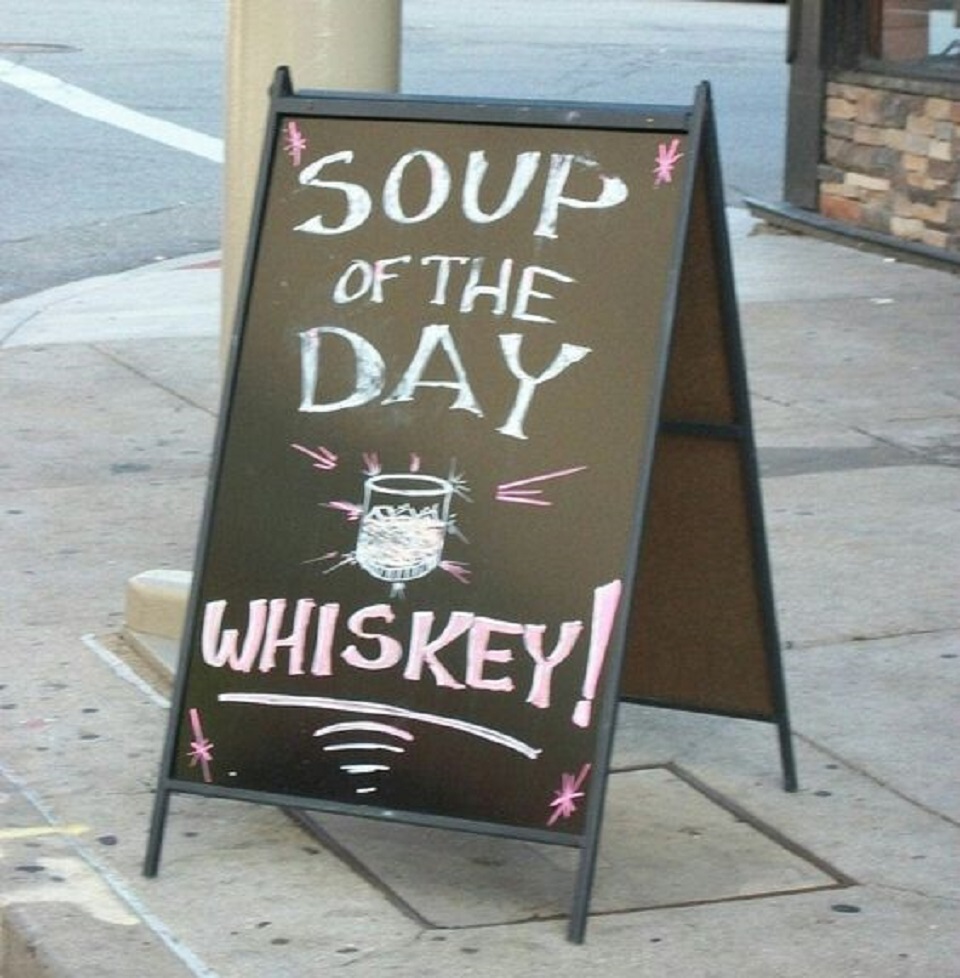 Let’s be honest, some people might actually think that whiskey could be soup. But at the same time, a restaurant shouldn’t be encouraging this type of behavior. Most probably, whoever wrote these signs thought they would save some space and write everything on the same side. The result was very unfortunate for them, but very funny for the rest of us!