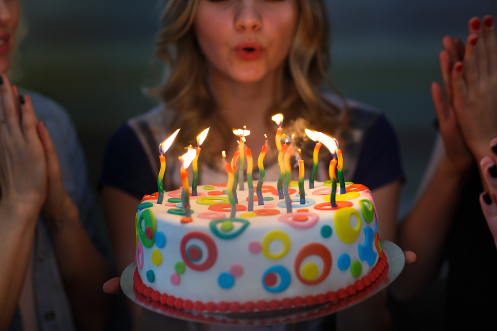 Blowing out the candles on your birthday cake.