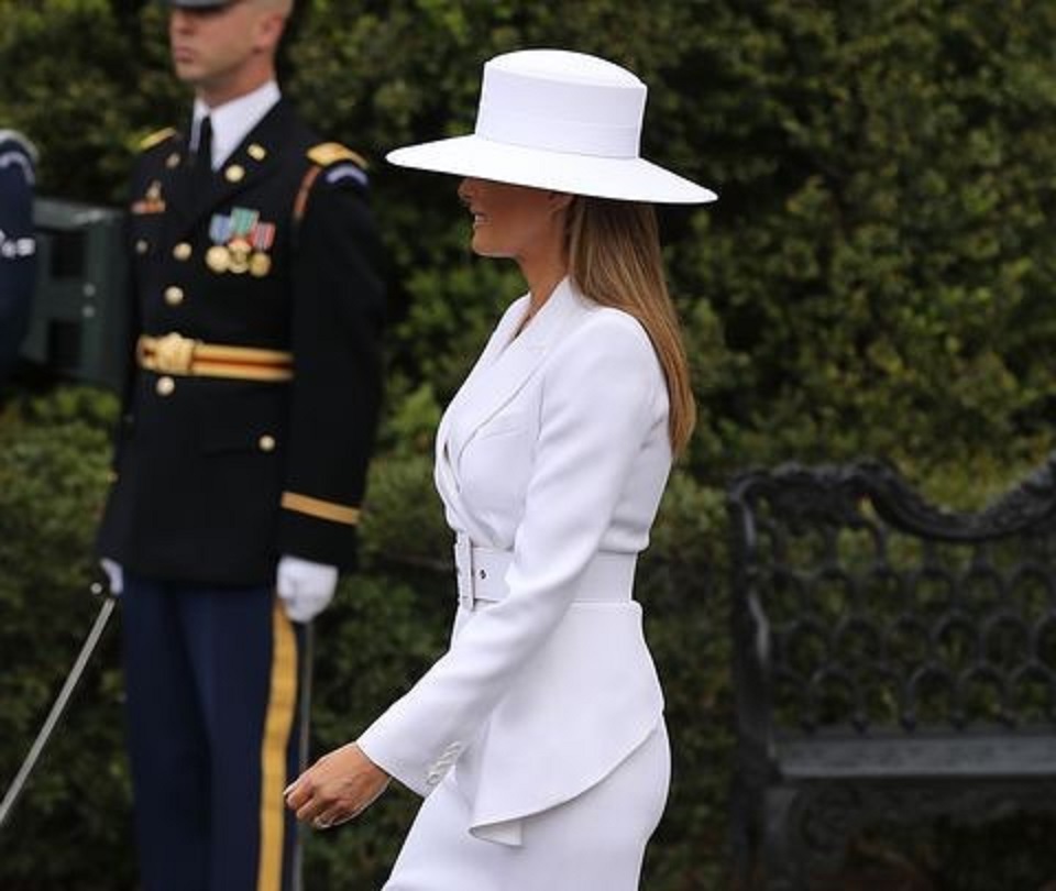 When the French president and his wife visited Washington in 2018, both Melania and French first lady Brigitte Macron attracted everyone’s attention as they both chose to wear white outfits. This was not that surprising as the two have dressed alike before on other occasions, because they seem to share the same sense of fashion. Melania’s clothes were surprising, and we are not talking about her Michael Kors jacket ($2,195) or the Christian Louboutin heels ($775), but rather about her impressive hat.
